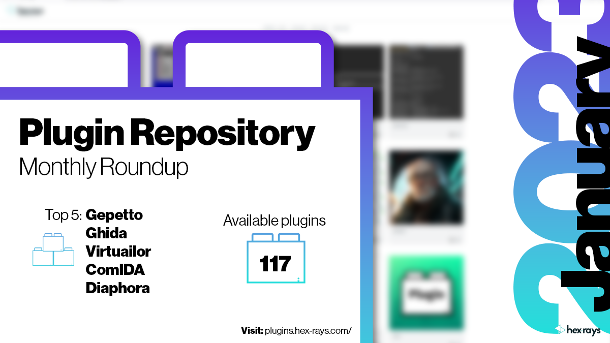 It is time for our Plugin Repository Monthly Roundup! We’ve got some new add-ons, and changes in the top 5 downloaded extensions. Visit our repository for many more useful plugins 🌐 https://plugins.hex-rays.com//?utm_source=Social-Media-Post&utm_medium=Mastodon&utm_campaign=plugin-repository-roundup-02-23