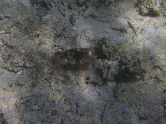 Is someone able to identify what this... fish... is? It seems to have a tail. Google Lens believes it may be a sea cucumber, or a snail, but given the faint tail that I see I don't think that is it.
