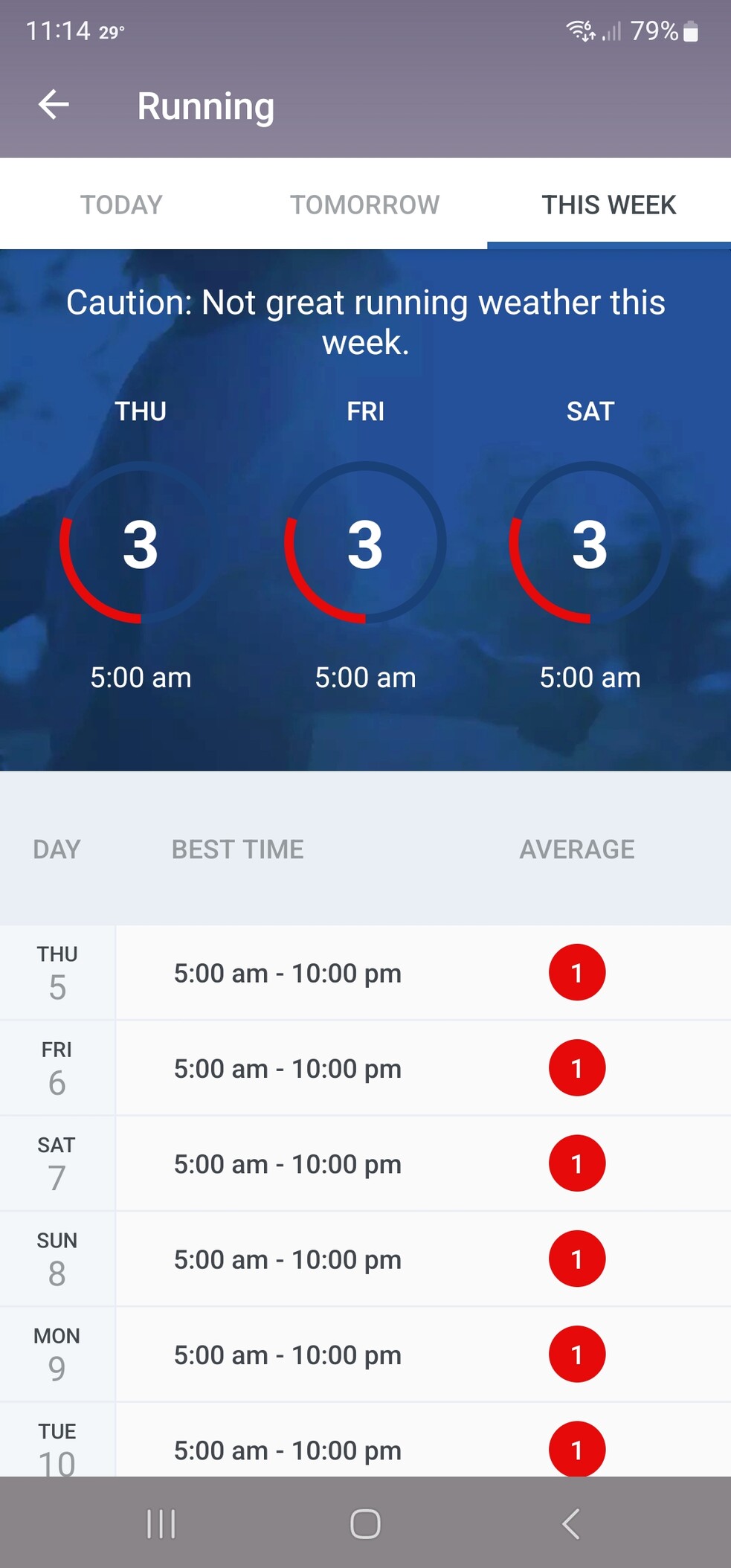 Installed a new weather app and came across this information. I never run so this is excellent validation.