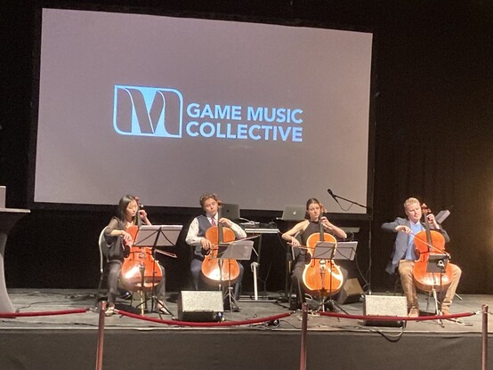 Finnish #igda chapter 20y party a-go-go. GameMusic Collective quartet on stage 🎻