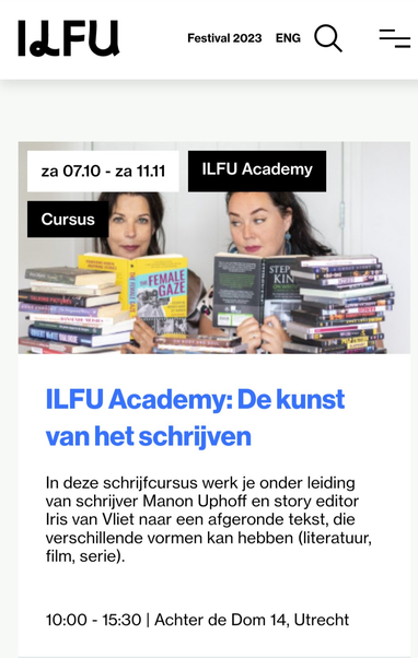 De Kunst van het Schrijven, onze cursus aan de #ILFUacademy in Utrecht gaat in oktober weer van start. Wij, docenten van dienst Manon Uphoff en Iris van Vliet kijken er naar uit.