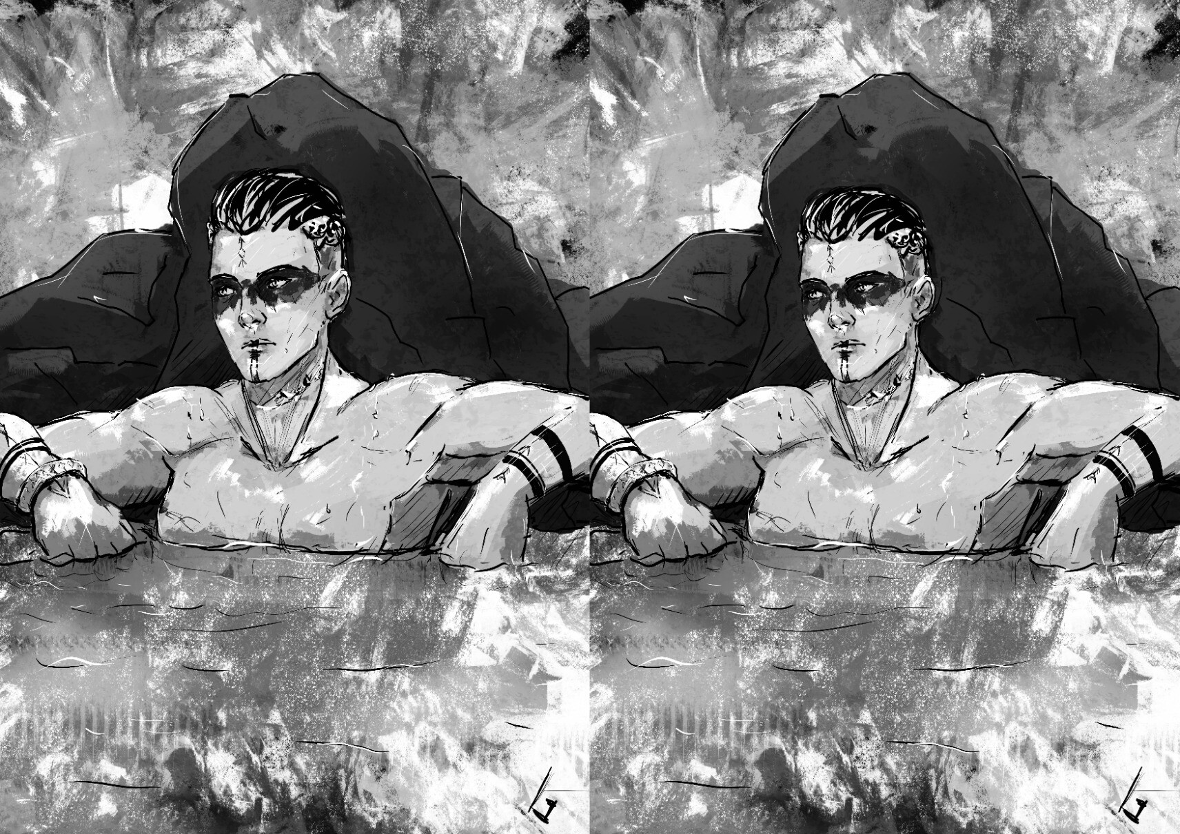 I can't share with you the exclusive illu's for Rán but I can share with you the lvl up/retake of two drawings planned for the novel (which will most probably have about 12 illu's for the basic version and 16 for the collector).