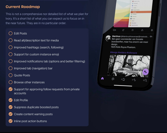 Jen abyste věděli, verze @Ivory 1.1 je právě venku. Kromě oprav chybek přidává možnost editace postů, reportování uživatelů a postů a přidává i možnost překladu postů, pokud je instance podporuje. Stahujte…d8-D