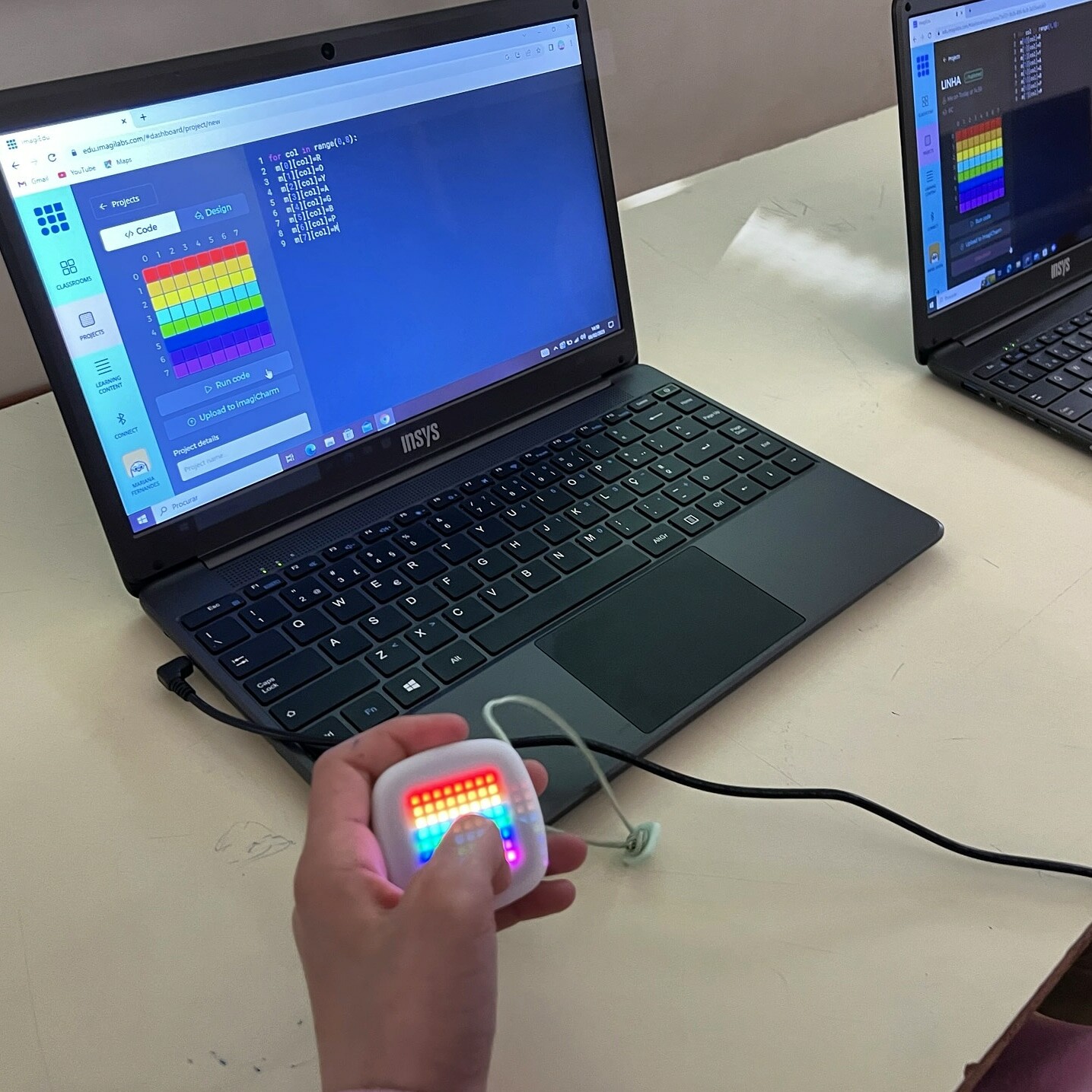 No workshop do CFAERC sobre programação com luz e cor, python e imagiCharms. #ticem3d #aevendadopinheiro #imagicharms #imagilabs #education