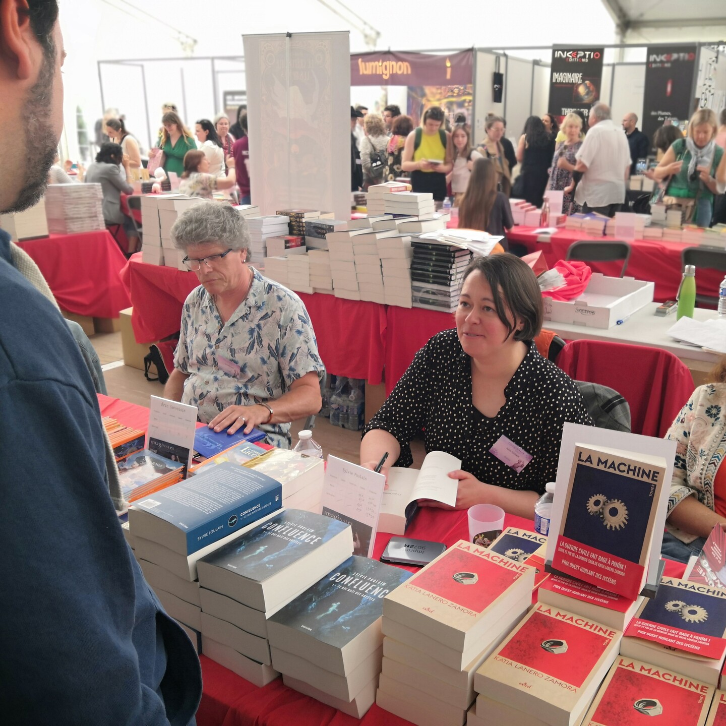 Et voilà, Sylvie Poulain vous parlera de son merveilleux roman d'aventure et de science-fiction Confluence 😊 c'est un des meilleurs romans de SF que j'ai lu. Quel que soit vos goûts littéraires, ayez l'audace de vous y lancer (et oui, le stock baisse à vue d'œil 🎊) #imaginales