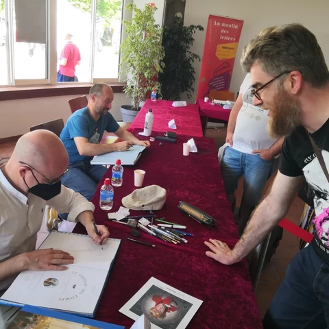Très belle rencontre avec Arthur Morgan et Alex Alice, cartophiles et dix-neuvièmarts magnifiques 🙏 #imaginales