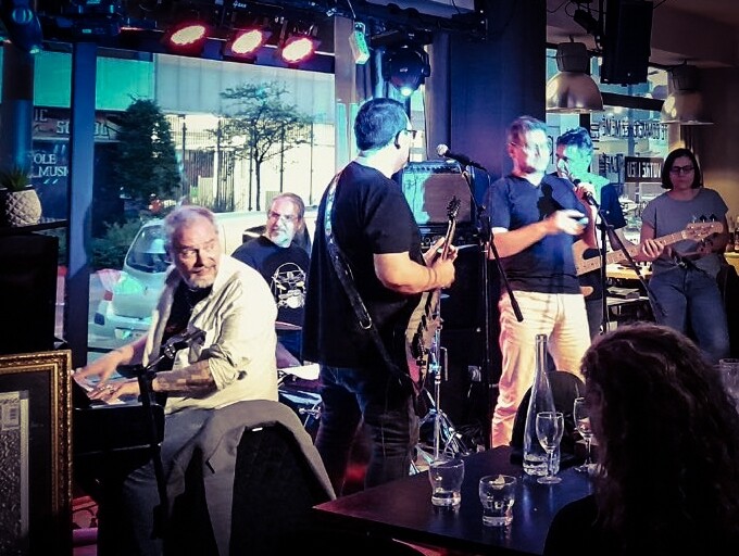 Avec entre autres le splendide @NicolasLebel au chant, Jean-Luc Bizien à la guitare, le remarquable Bruno Pochesci à la basse, Francis à la batterie, votre serviteur au piano, et même le formidable @ploum aux choeurs dans la salle 🤣