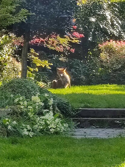 Fox in the garden earlier. Dogs very agitated, but fox just turned around and bimbled off out of site. #incidentalUrbanWildlifeObservation
