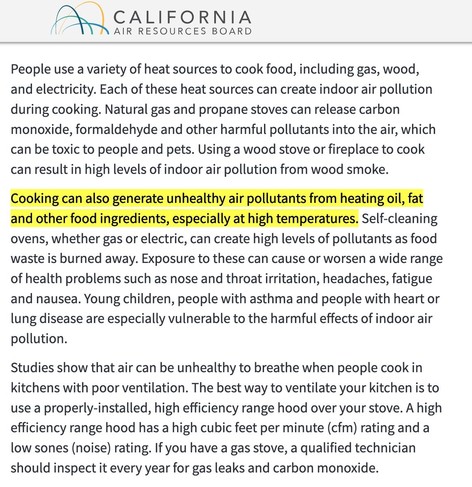 Who's gauged proportion of #indoorpollution #healthrisk (USA) from cooking heat source (gas, propane, e.g.) versus *process* (frying, broiling, etc.)? Attn @PolicyIntegrity @TrumkaCPSC @ConsumerReports @AirResources etc? https://ww2.arb.ca.gov/resources/documents/indoor-air-pollution-cooking Related: https://www.sciencedirect.com/science/article/abs/pii/S0304389411010429?via%3Dihub