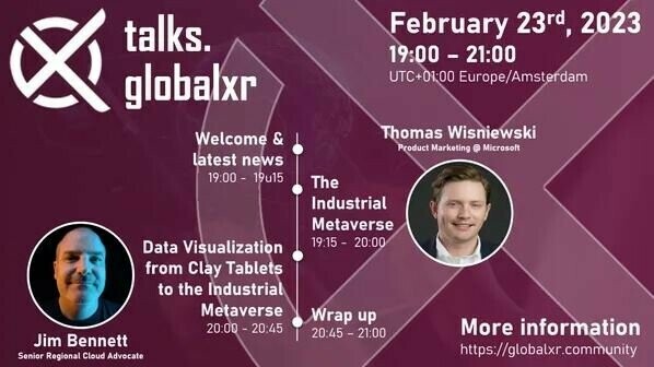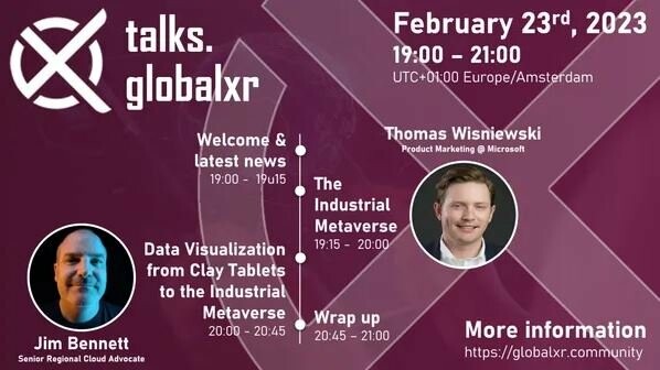Join us for today's event on #IndustrialMetaverse with expert speakers Thomas Wisniewski and Jim Bennett. Don't miss this unique opportunity to learn and connect with like-minded professionals. Register now at https://globalxr.community/ #XR #Microsoft #DataVisualization #Metaverse