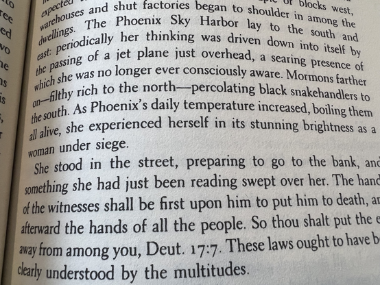 The heat and brightness of Phoenix in Angels by Denis Johnson. See also #InfiniteJest