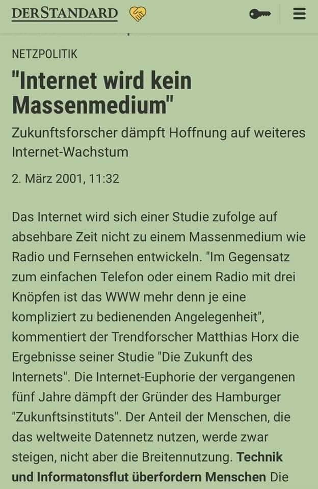 Link zum Artikel: https://www.derstandard.at/story/496477/internet-wird-kein-massenmedium