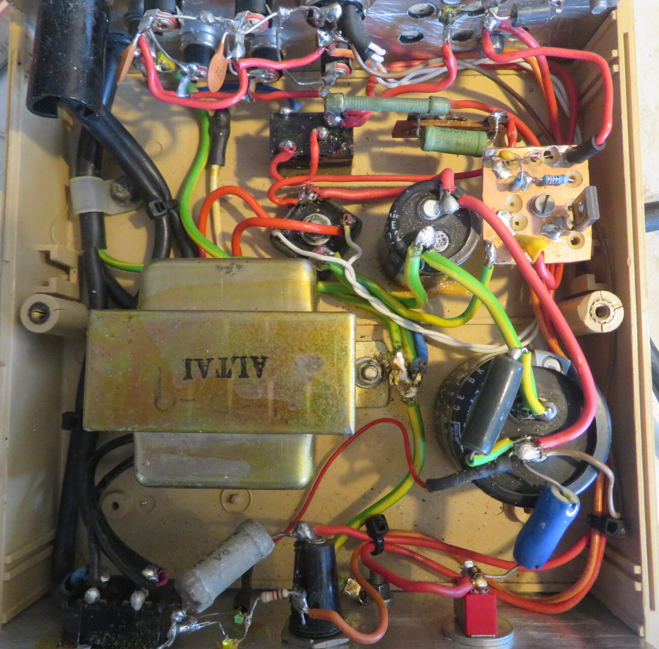 Unlabelled box #n - I'm slowly going through stacks of unlabelled randomly wired together boxes in my dads shack; this looks like a simple 12v PSU for the other random boxes. Though there's an SCR and relay(?) in there - so I suspect that's something like a startup-delay on the output.