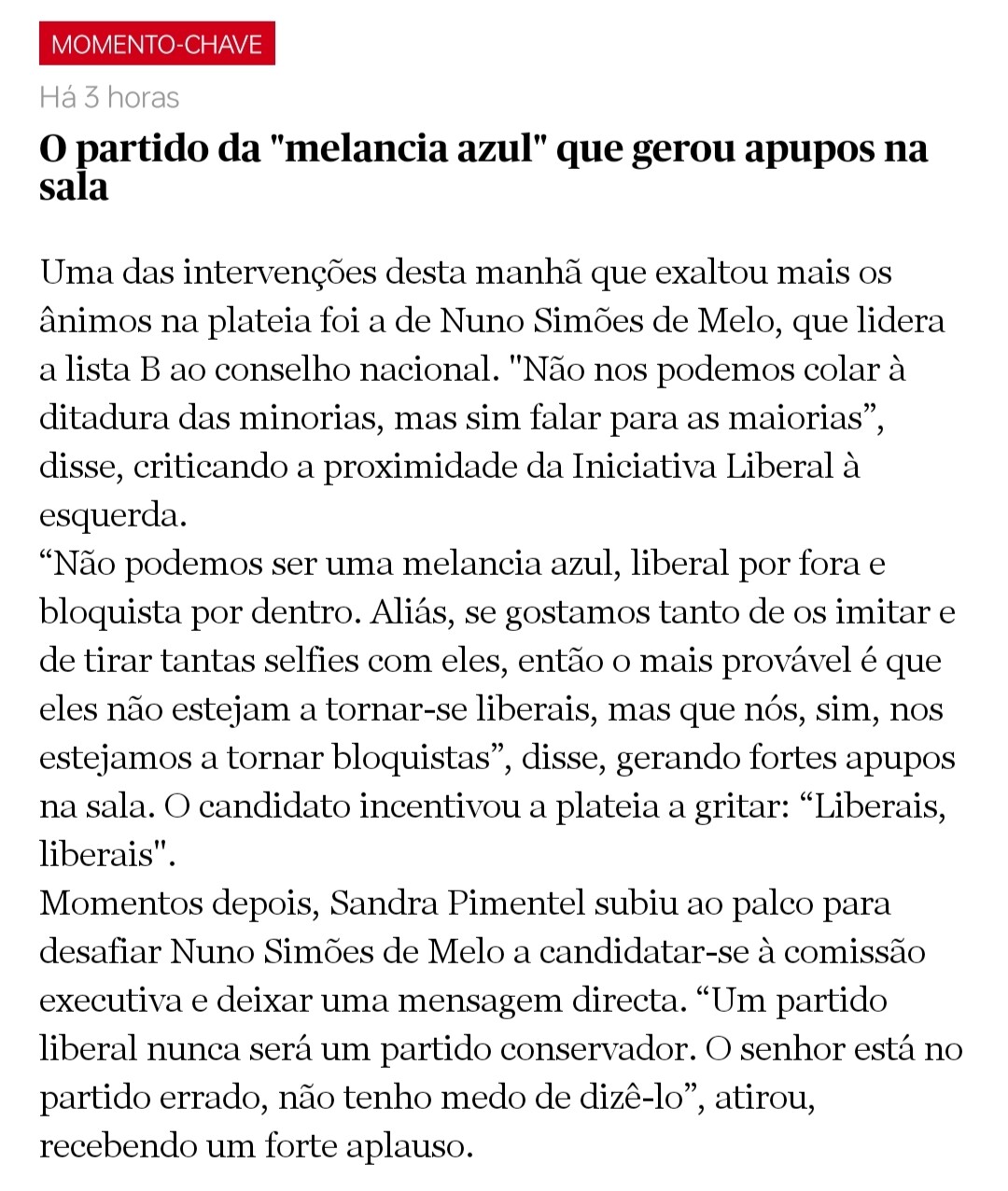 A Iniciativa Liberal está muito mal liderada. O Rui Rocha tem o Carisma do Paulo Raimundo.