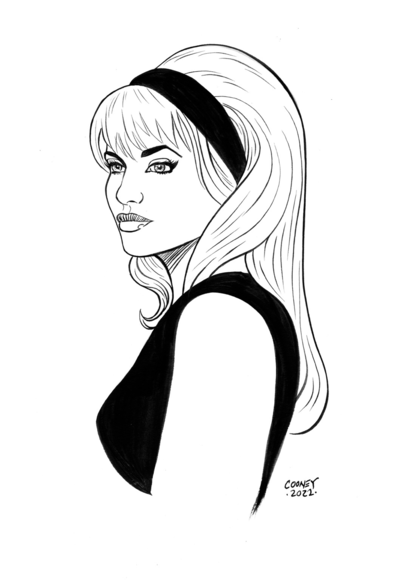 Gwen Stacy—pen and ink. In honor of what would’ve been Stan Lee’s 100th birthday, I wanted to pay homage to the character inspired by his wife and drawn by wonderfully by John Romita and Terry Dodson. Bring on 2023. ✨🕷️#gwenstacy #stanlee #marvelcomics #spiderman #pen #penandink #inkbrush #twsbi
