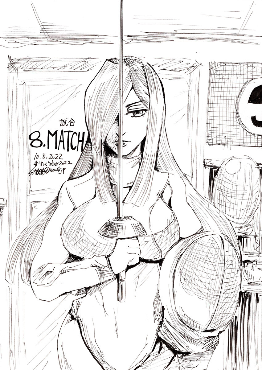 インクトーバー2022 8 MATCH 試合前のパラソール | S,夜紫蛇☆nouskjp #pixiv #inktober #inktober2022day8 #skullgirls