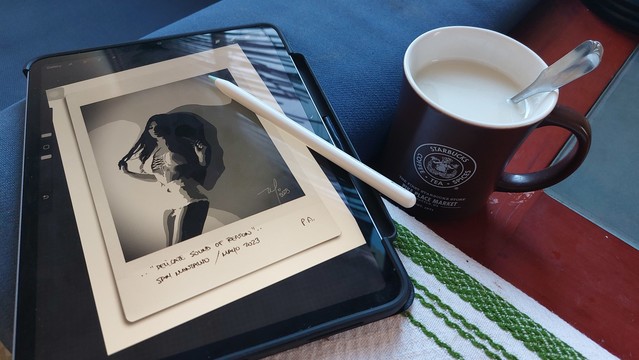 A veces el #insomnio hay que acompañarlo con té, #PinkFloyd y ponerse a ilustrar en el #ipad.