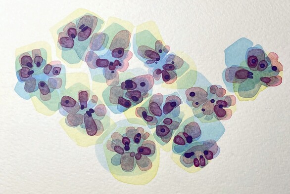 Daisy cells (benign mesothelium) from a #pathology slide as #WatercolourPainting from 2017.