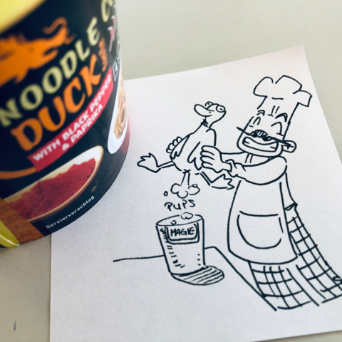 Wie ich mir vorstelle, wie das Aroma "Ente" zu den Nudeln kommt.