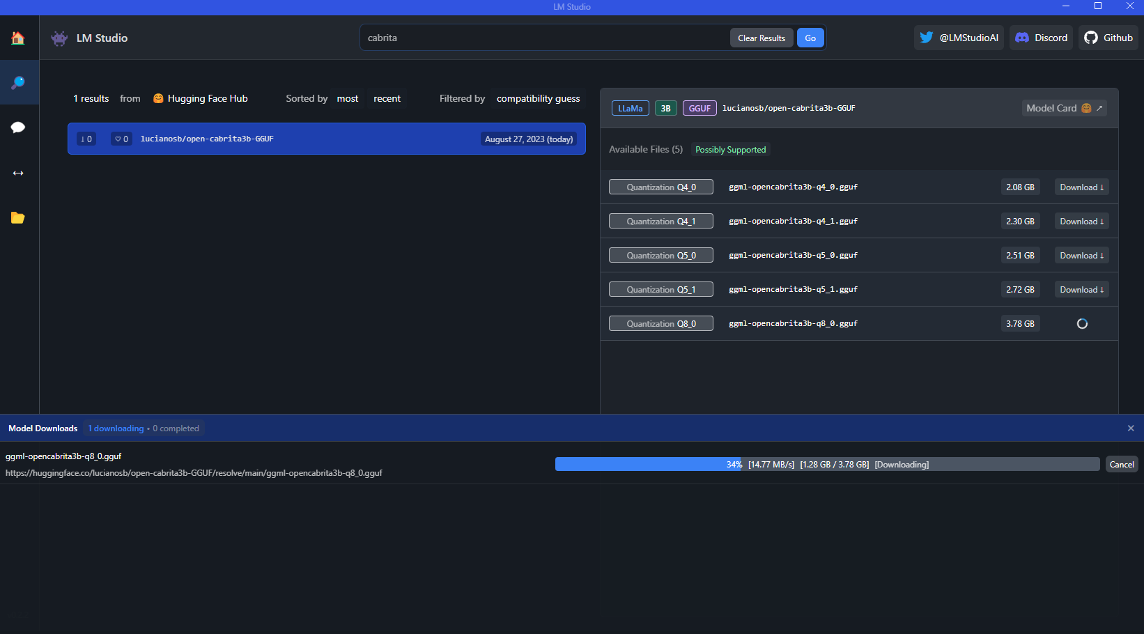 Deseja usar IA no seu PC de forma privativa? Instale o https://lmstudio.ai e use várias IAs diferentes, incluindo o Cabrita treinado em língua portuguesa. Disponibilizei várias versões para atender à diferentes hardware.