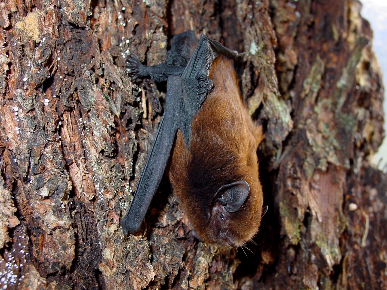 Ah, the Little Brown Bat, an *absolutely classic* bat. These bats are often found near humans and human structures. They hibernate in cold weather in colonies of 200,000 or more!