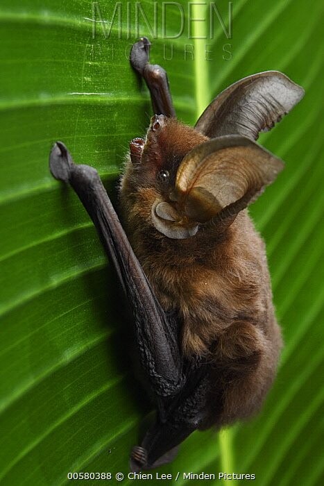 Despite its name, this bat does not actually use suction to stick to leaves; it creates wet adhesion by secreting a "sweat-like" liquid. They use this adhesion to live on the leaves of the traveller's palm, which are *SO* smooth that parasites are unable to get to the bats