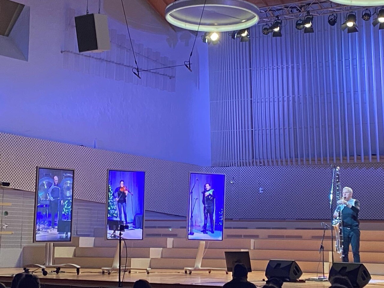 Some great pictures taken by Nikolaus Brade at the #InterwovenSoundSpaces concert. Live audio video connection between Konzertsaal UdK Berlin and Studio Acusticum Piteå for a concert with Norrbotten NEO and KNM Berlin playing together. Two of the composers, Cat Hope and Malte Giesen , were in the audience in Berlin and presented their pieces before the performance.