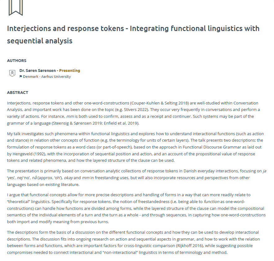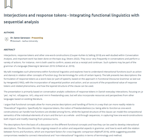 Abstracts for the International Pragmatics conference are out! My talk is on at Tuesday July 11th 10:30 - as part of the panel "Integration of conversation analytic and other linguistic methods ". Who is ready? #IPrA