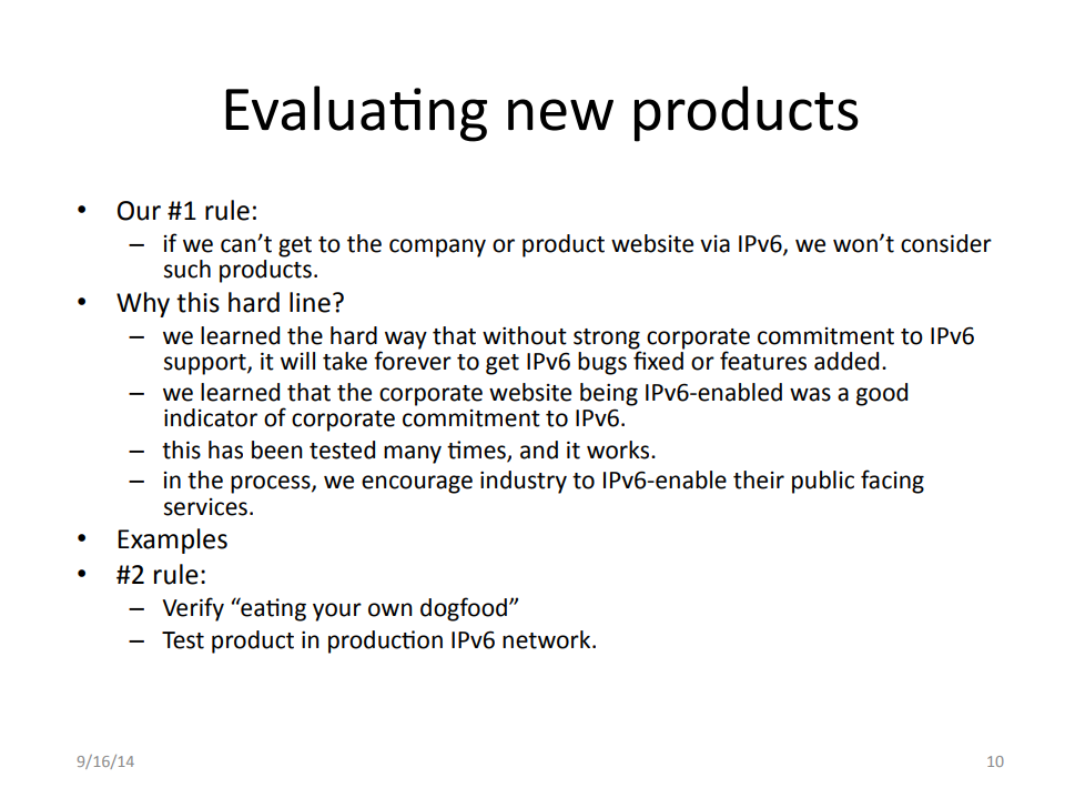 Decade-old advice: If you can't get to a company or product website over IPv6, don't consider it.