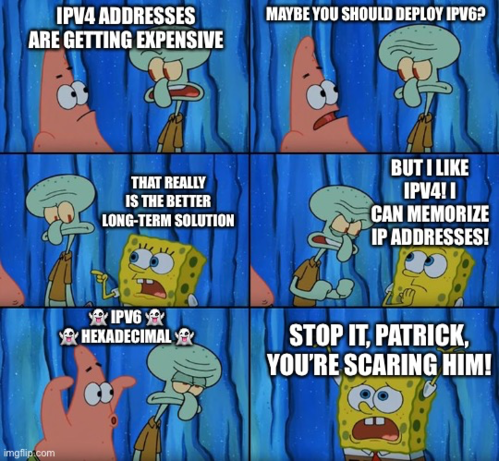 so! here’s a thread of #ipv6 memes for easy use. (some oc, some repatriated for the good of the internet)