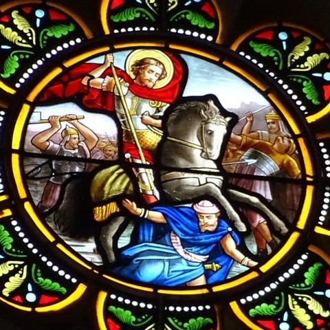 Motivo central del rosetón de la Catedral de Santiago, en Bilbao. Lo llamarán “arte” , e incluso “cultura”, pero en realidad ejemplifica el uso —histórico y universal— de la religión con fines políticos, en este caso, de propaganda de guerra. #islamofobia #EstoRecibeSubvenciones