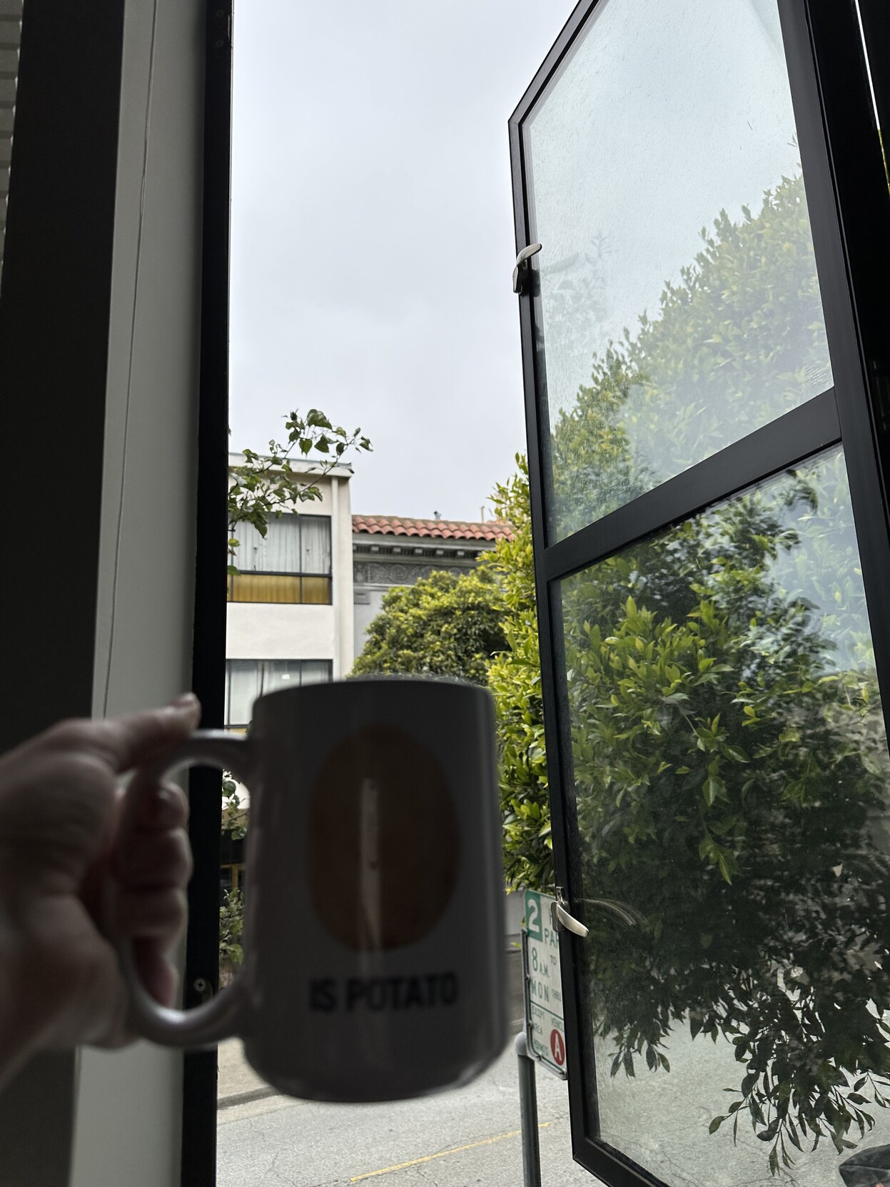 Wishing you, the WGA, and every striking union member, strong coffee and soft breezes. #MugShot #IsPotato #sfba