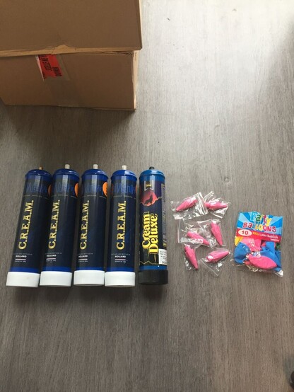 👉 des cartons de protoxyde d'azote, accompagnés de ballons de baudruche