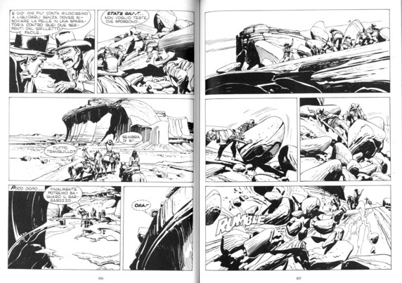 A shocking scene brilliantly illustrated by Giovanni Ticci from Tex: Il Pueblo Perduto.
