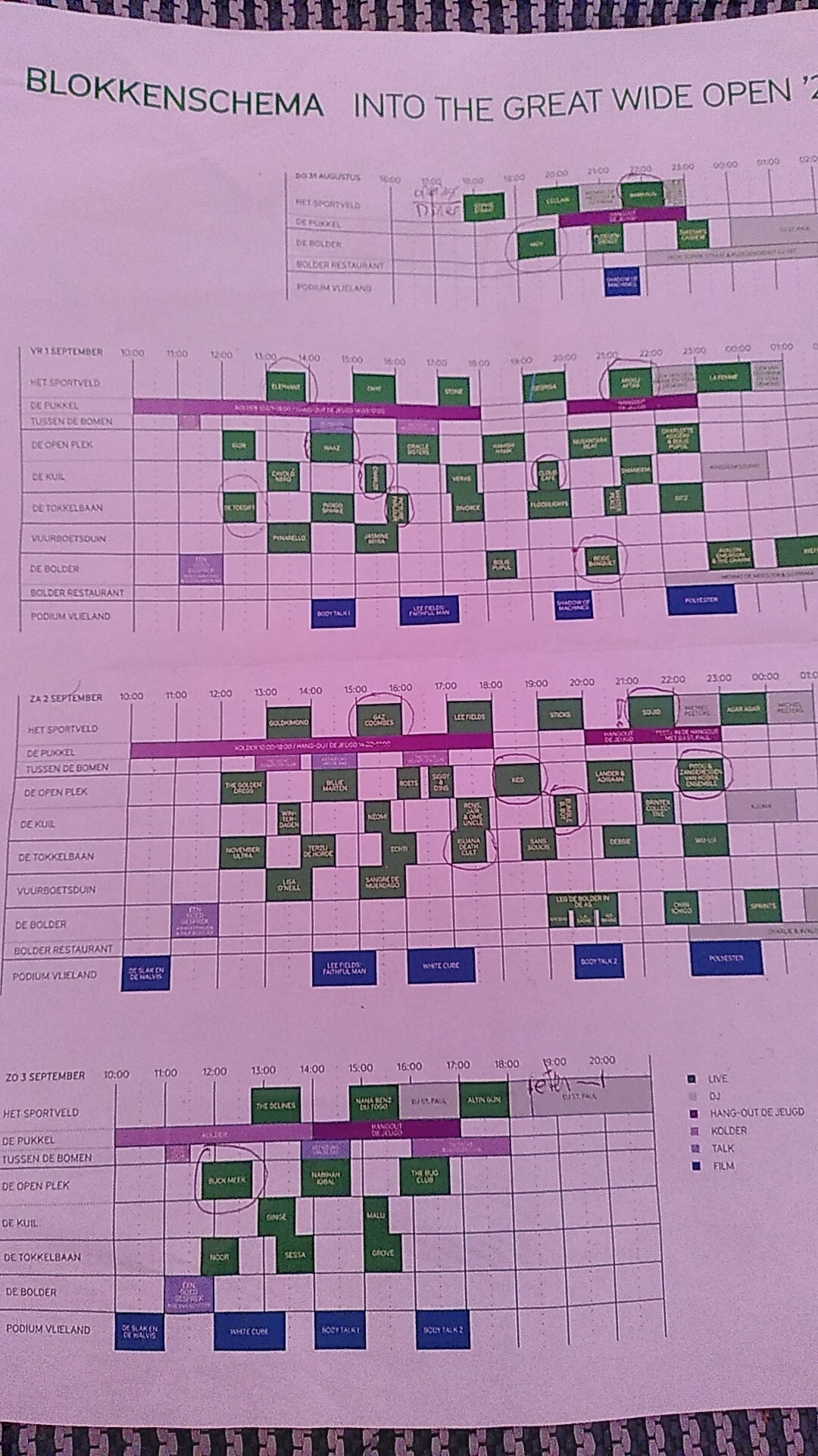 genoeg piketpaaltjes op papier om het hele #ITGWO vorm te geven. genoeg lucht in t schema om kunst te zien, wat verrassends te horen, wat te happen, relaxed.