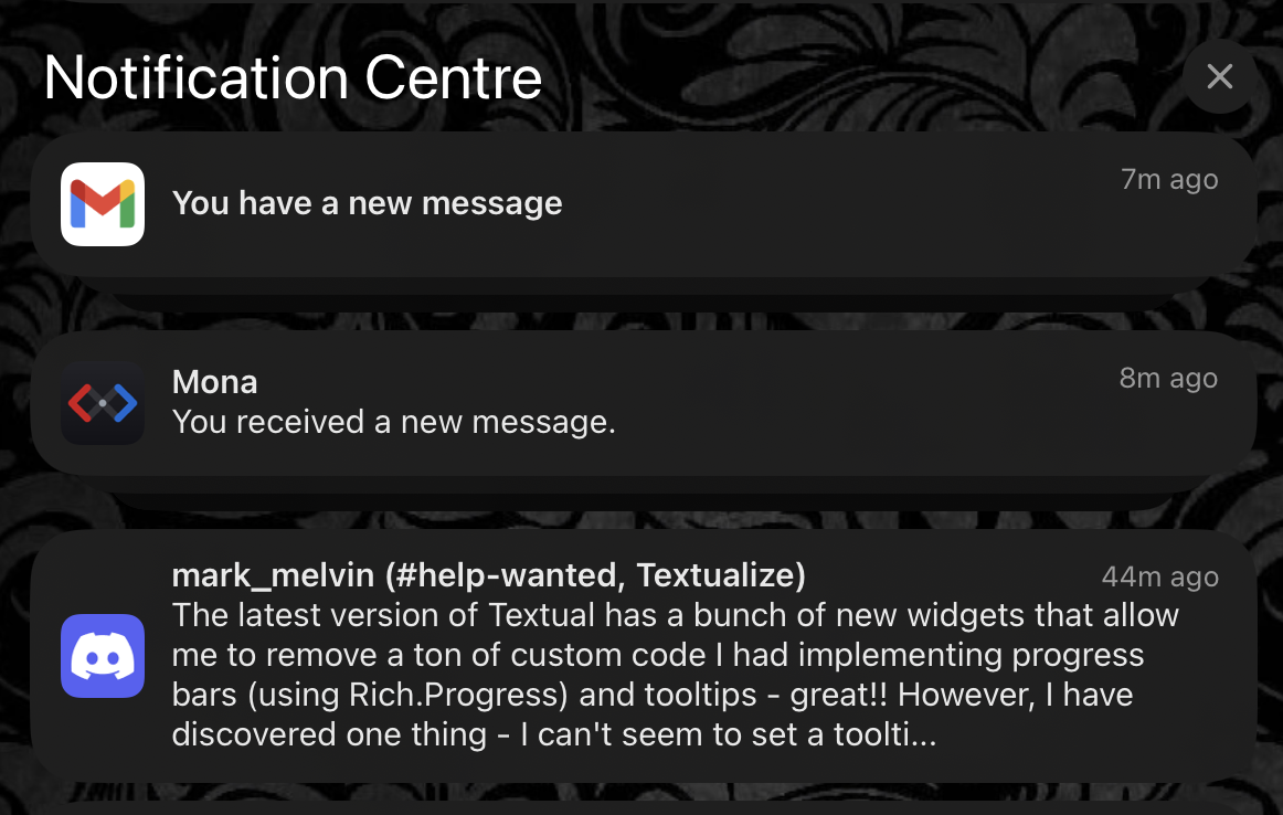 Notifications for the same apps preview fine on the iPhone and the Macs.