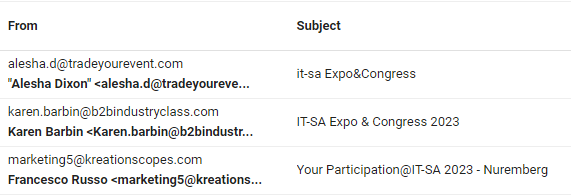 A few days after I registered my company as an exhibitor for it-sa, the first emails arrived in my spam quarantine:
