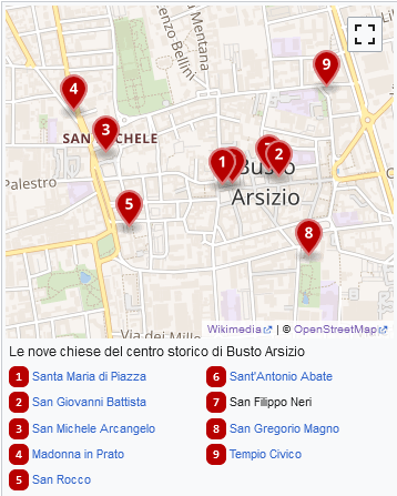 2. ma c'รจ anche un comodo #template su #itwiki che si chiama Mappa OSM e permette vari tipi di visualizzazioni: qui sotto per punti, simile a quello precedente, con la legenda preimpostata https://it.wikipedia.org/wiki/Template:Mappa_OSM