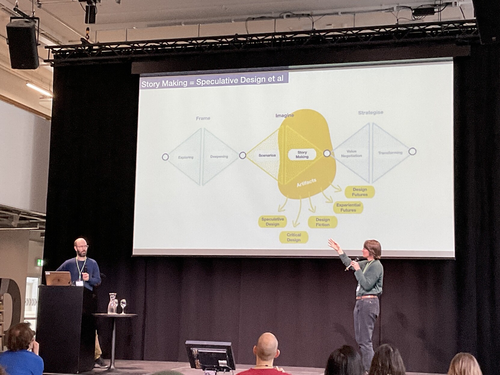 A great talk by Eileen Mandir & Benedikt Groß on “Strategically exploring, designing and negotiating future scenarios with Design Futuring”. Check out the Studio projects, including SoulPod and Nomad at https://sg.hfg-gmuend.de #interaction23 #ixda