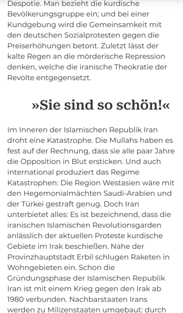 Hier das Editorial der aktuellen #iz3w zu den #WomenLifeFreedom Protesten in #Iran Der Text beschreibt Eindrücke von einer Kundgebung im verregneten #Freiburg, bei der phasenweise die Sonne durchbricht. Darunter schreibt die Redaktion: „Wir werden weiter über Iran berichten. Damit das so bleibt, entwickeln wir uns fort: Zusätzlich zur Printzeitschrift startet mit dieser Ausgabe unser neuer Webauftritt. Anschauen kann man sich das hier: https://iz3w.org . Neben unseren Print-Texten wird es zukünftig zusätzliche Online-Inhalte geben und wir können zeitnäher berichten.