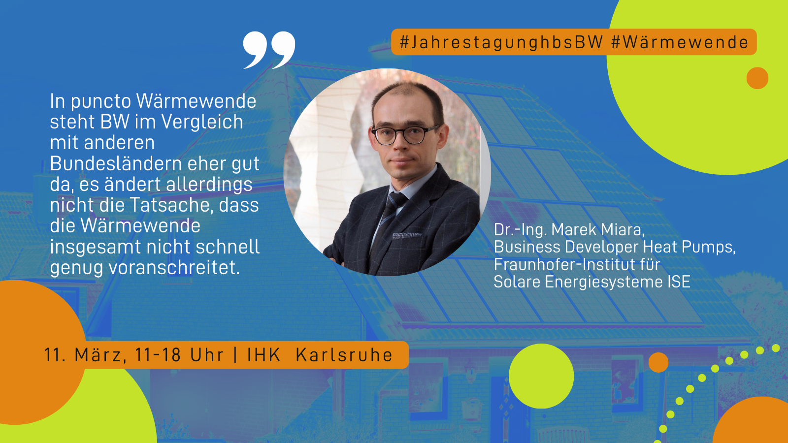 Dr.-Ing. Marek Miara leitet das Forum 2 | Wärme für Einzelgebäude: Die #Wärmepumpe als Hoffnungsträgerin und ihre Voraussetzungen bei unserer #jahrestagunghbsbw #wärmewende. Er meint: In puncto Wärmewende steht BW im Vergleich mit anderen Bundesländern eher gut da, es ändert allerdings nicht die Tatsache, dass die Wärmewende insgesamt nicht schnell genug voranschreitet.