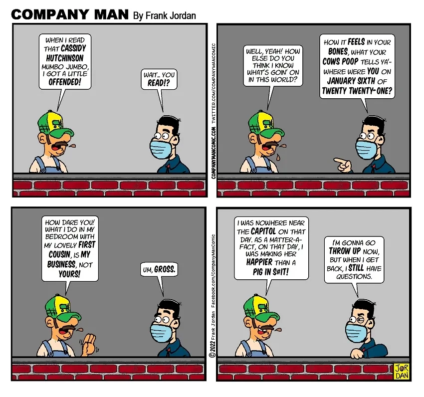 #NEW! Click here for today's comic 👉🏾 http://CompanyManComic.com #HUMOR #COMICS #FUNNY 👎🏾#insurrectionists #donaldjtrump 👍🏾#CassidyHutchinson #Jan6thCommittee #Jan6thTranscripts #BlackLivesMatter #CartoonistsWhoResist #ProtectWomensReproductiveRights