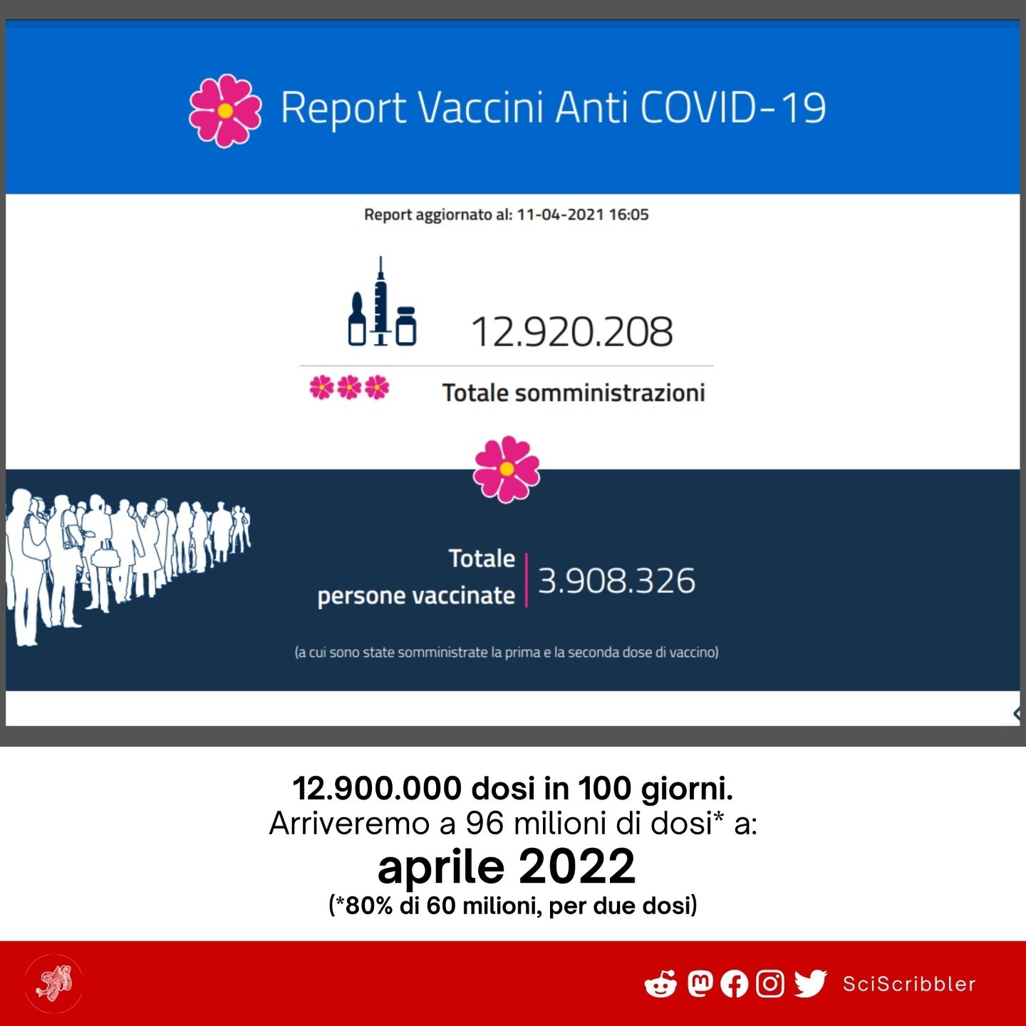 Dopo 100 giorni abbiamo raggiunto il 10% di copertura teorica (in realtà è minore, perché molti hanno ricevuto solo la prima dose).