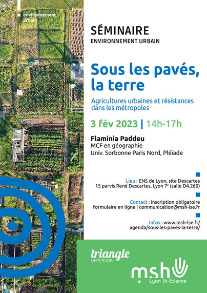 #Environnement urbain | Sous les pavés, la terre : agricultures urbaines et résistances dans les métropoles. Séminaire avec @Flaminiapad@twitter.com le 3 fév 2023 @ENSdeLyon@twitter.com #geographie #ville #agriculture #jardinpartage >> http://www.msh-lse.fr/agenda/sous-les-paves-la-terre