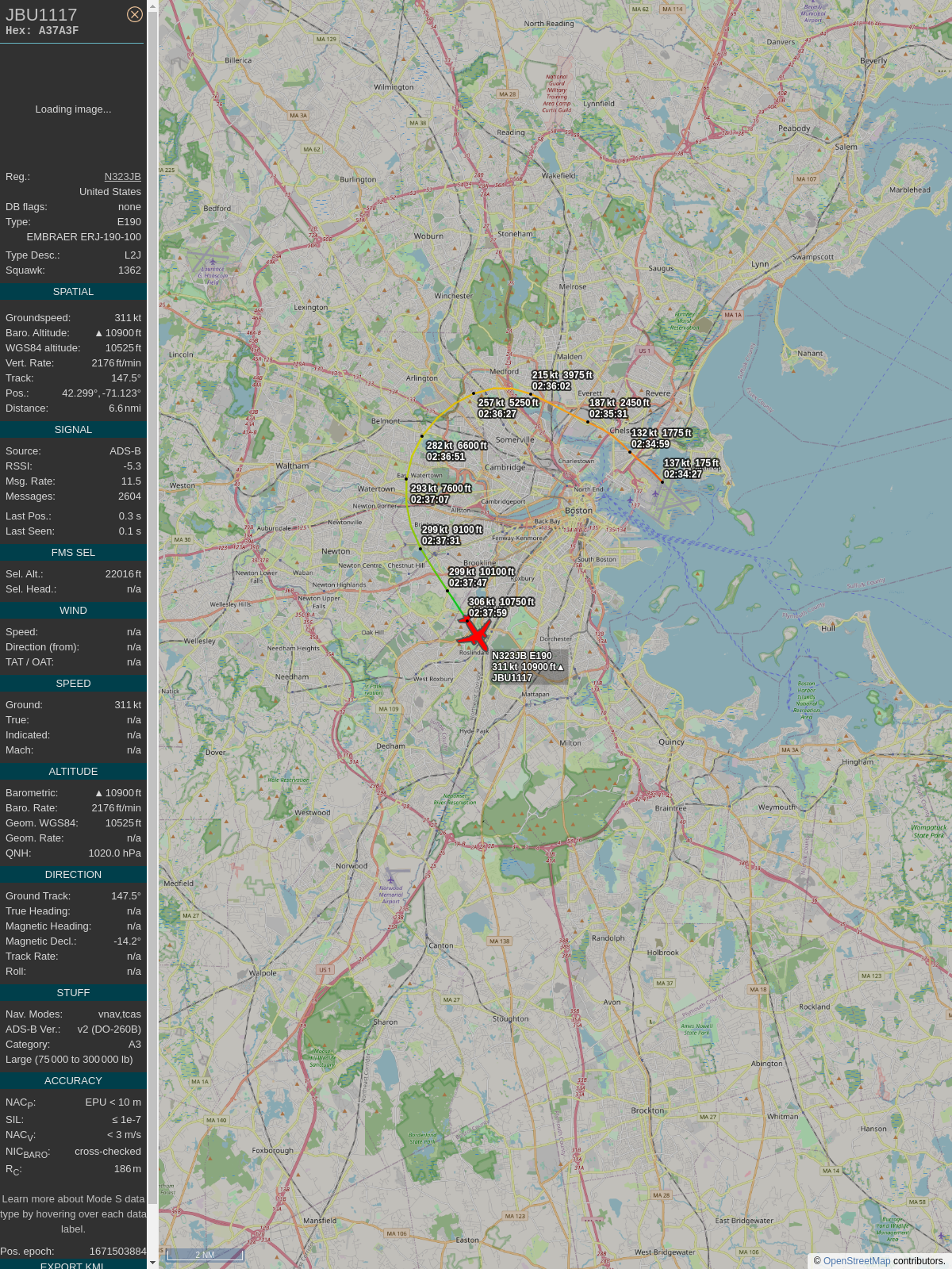 ICAO: #A3F82A Flt: #JBU1117 #JetBlue #BOS-#JFK First seen: 2022/12/18 22:48:14 Min Alt: 5000 ft MSL Min Dist: 1.97 nm #planefence #adsb - https://planefence.com https://globe.adsbexchange.com/?icao=a3f82a&lat=42.400895&lon=-71.121911&zoom=12&showTrace=2022-12-18