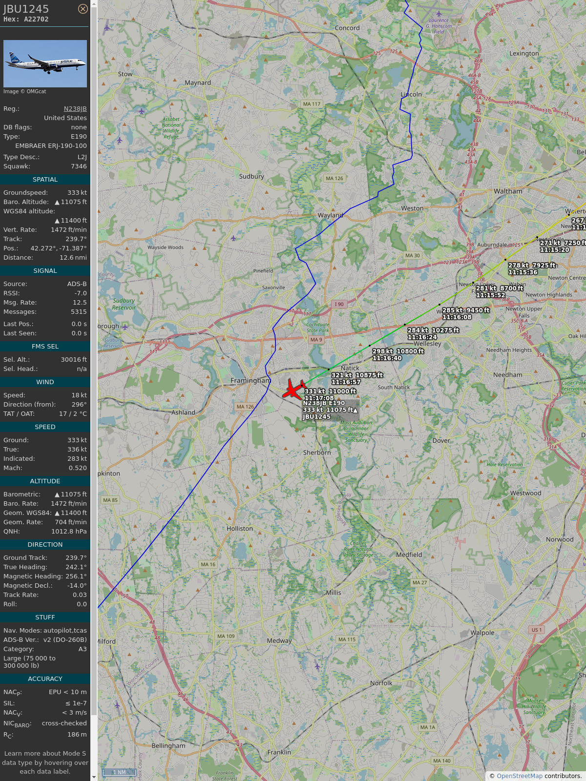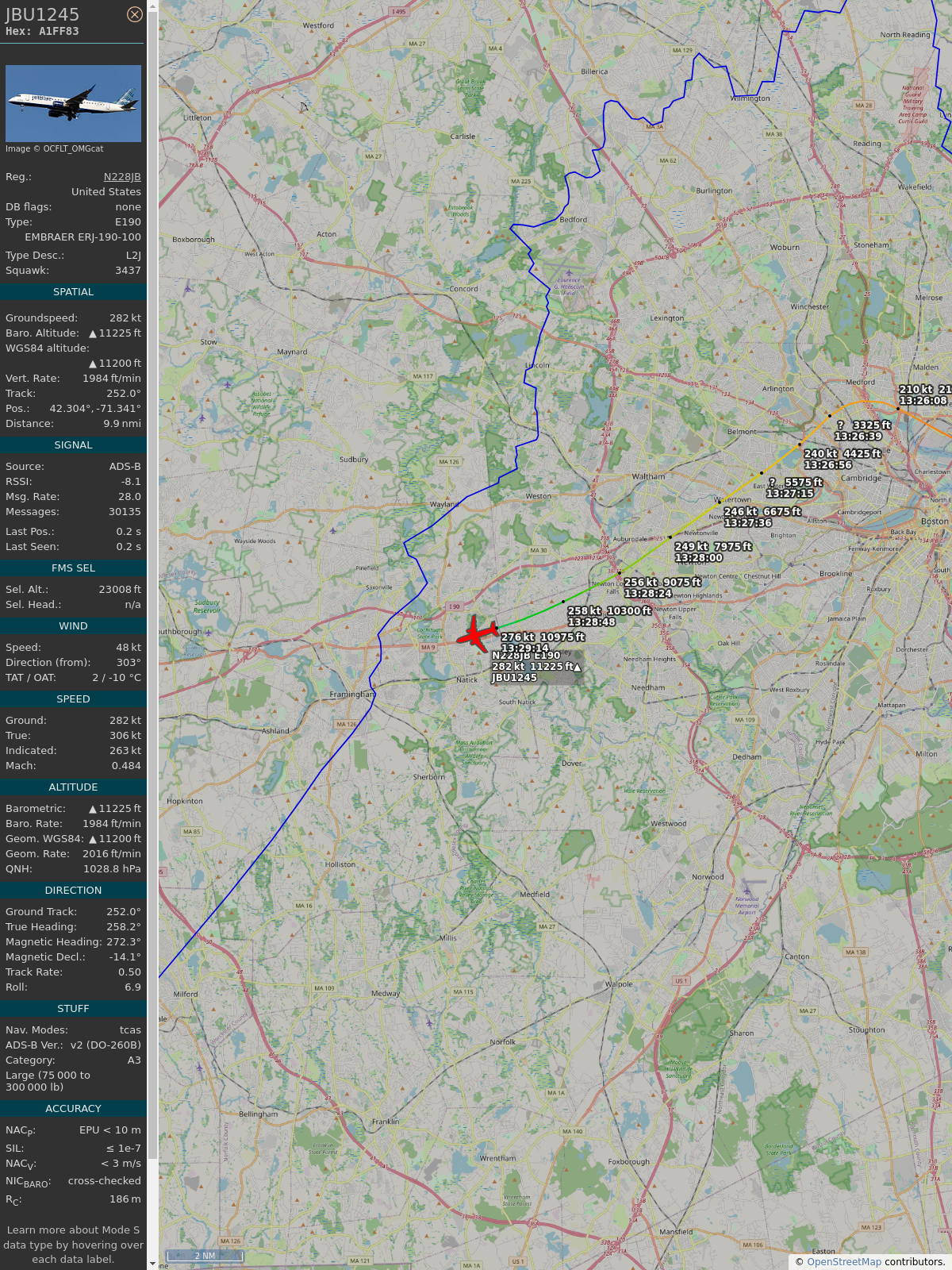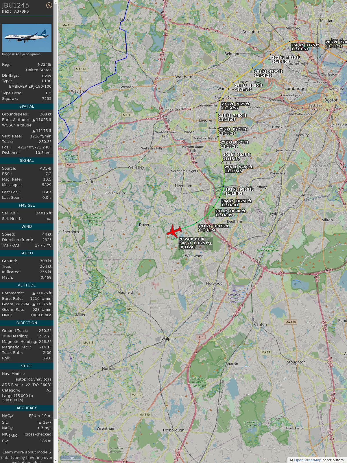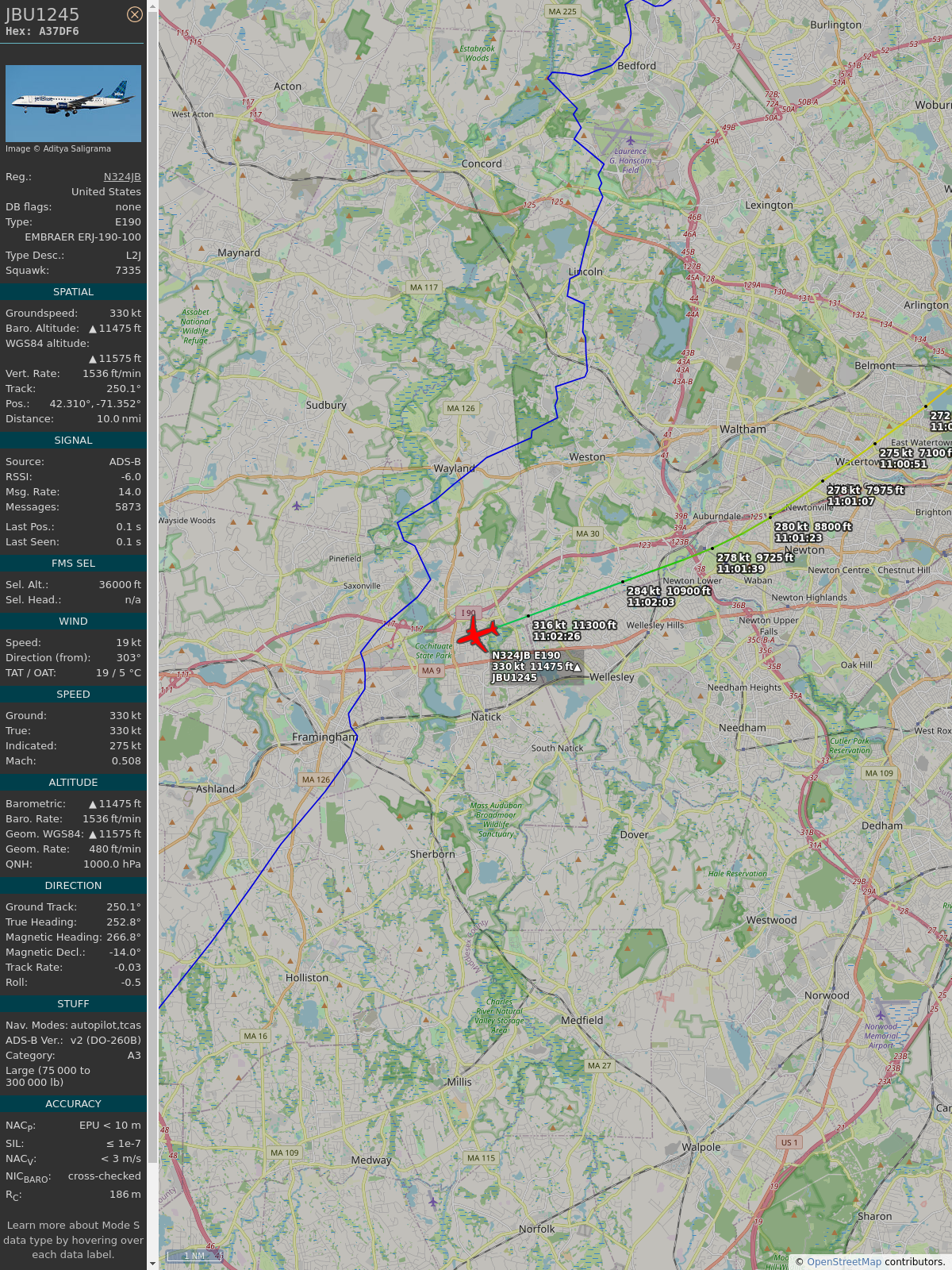 #a3f82a #jbu1245 #jetblue #bos #clt #planefence #adsb