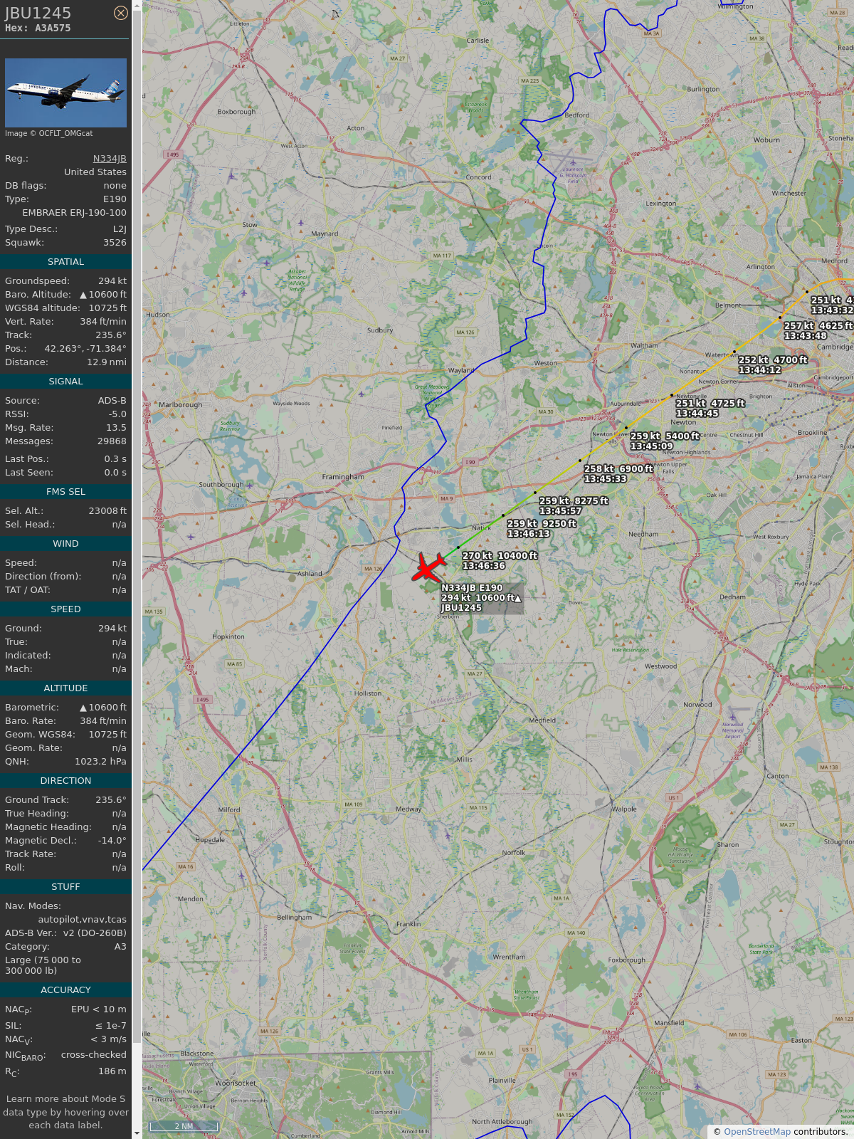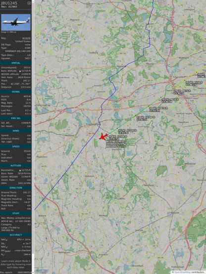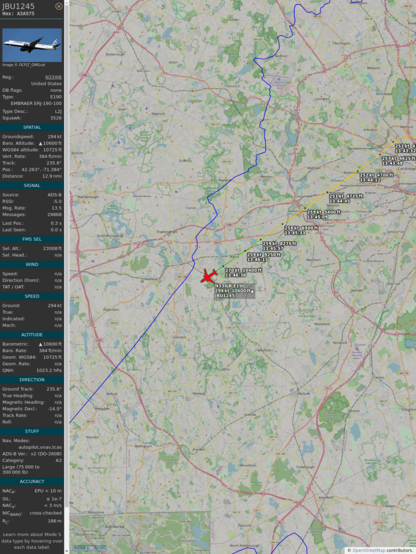 #a22ab9 #jbu1245 #jetblue #bos #clt #planefence #adsb
