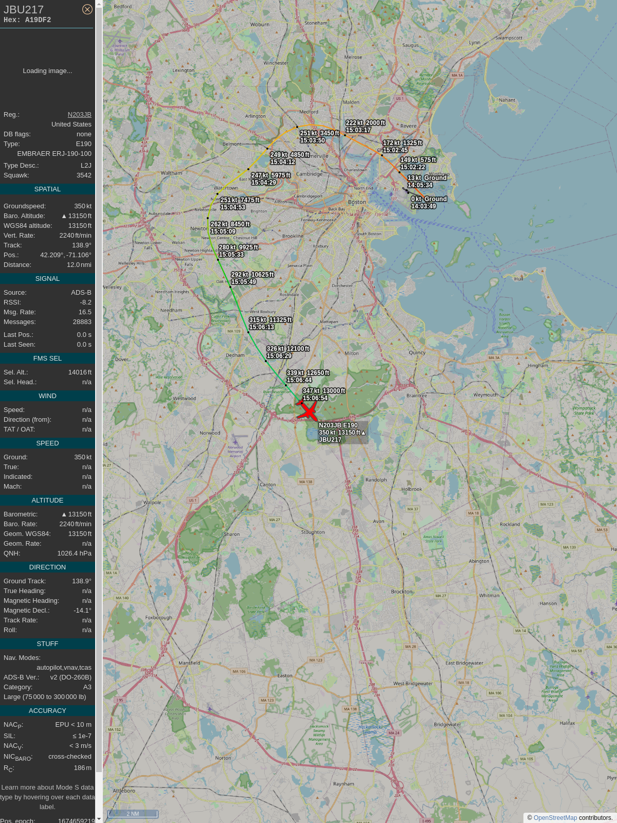 #a72f22 #jbu217 #jetblue #planefence #adsb