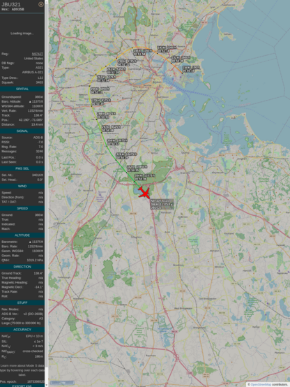 #a6c3ca #jbu321 #jetblue #bos #pbi #planefence #adsb