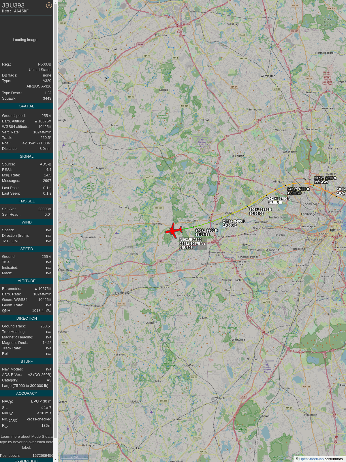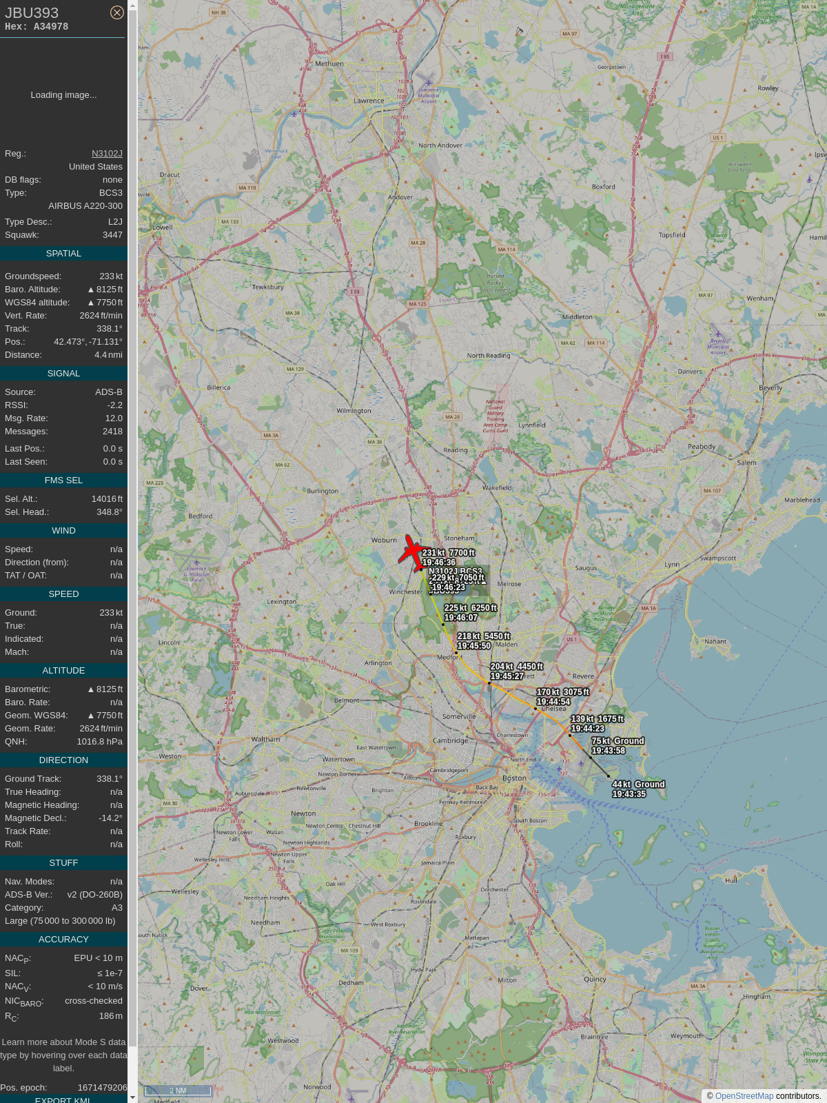 #a3355e #jbu393 #jetblue #bos #den #planefence #adsb